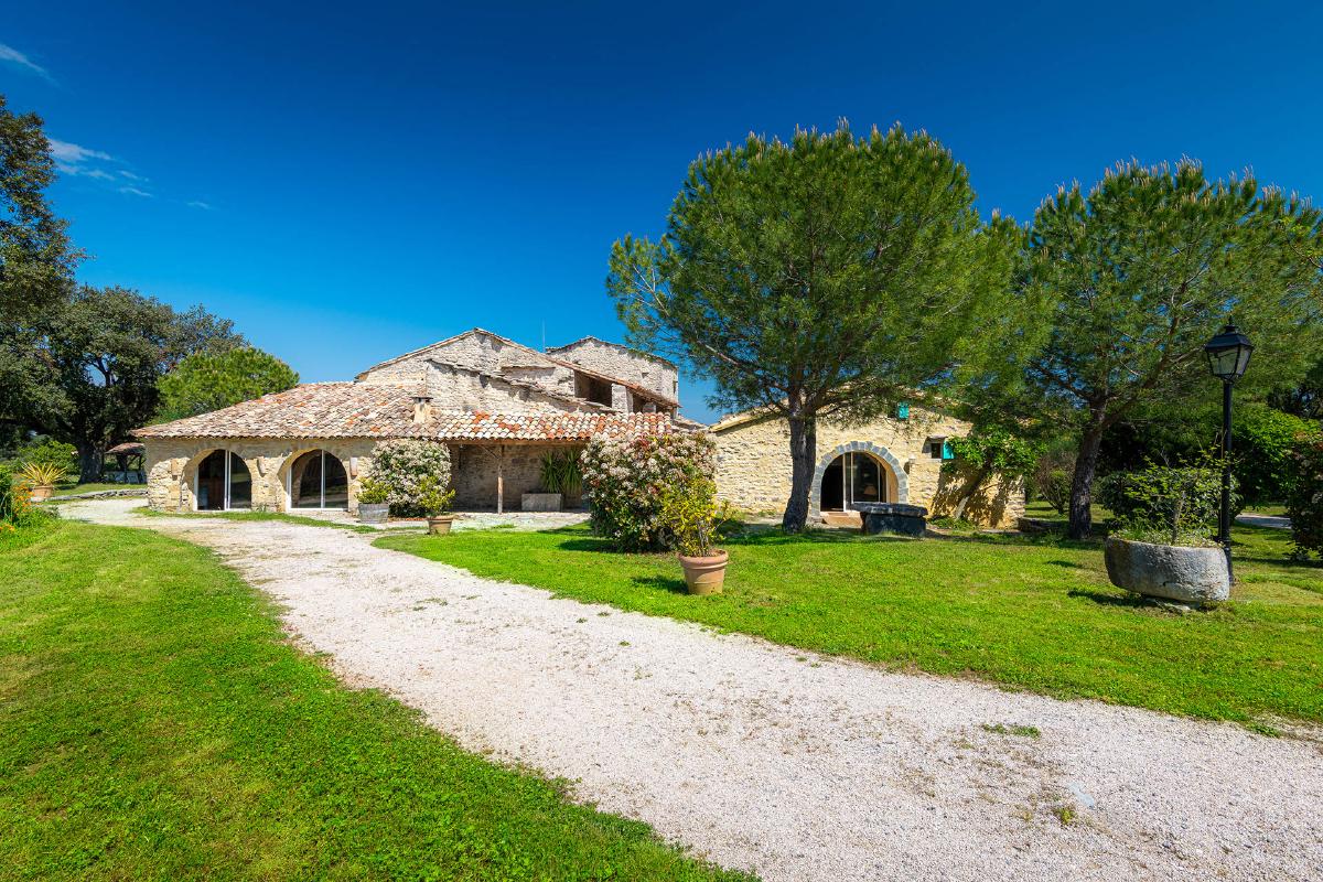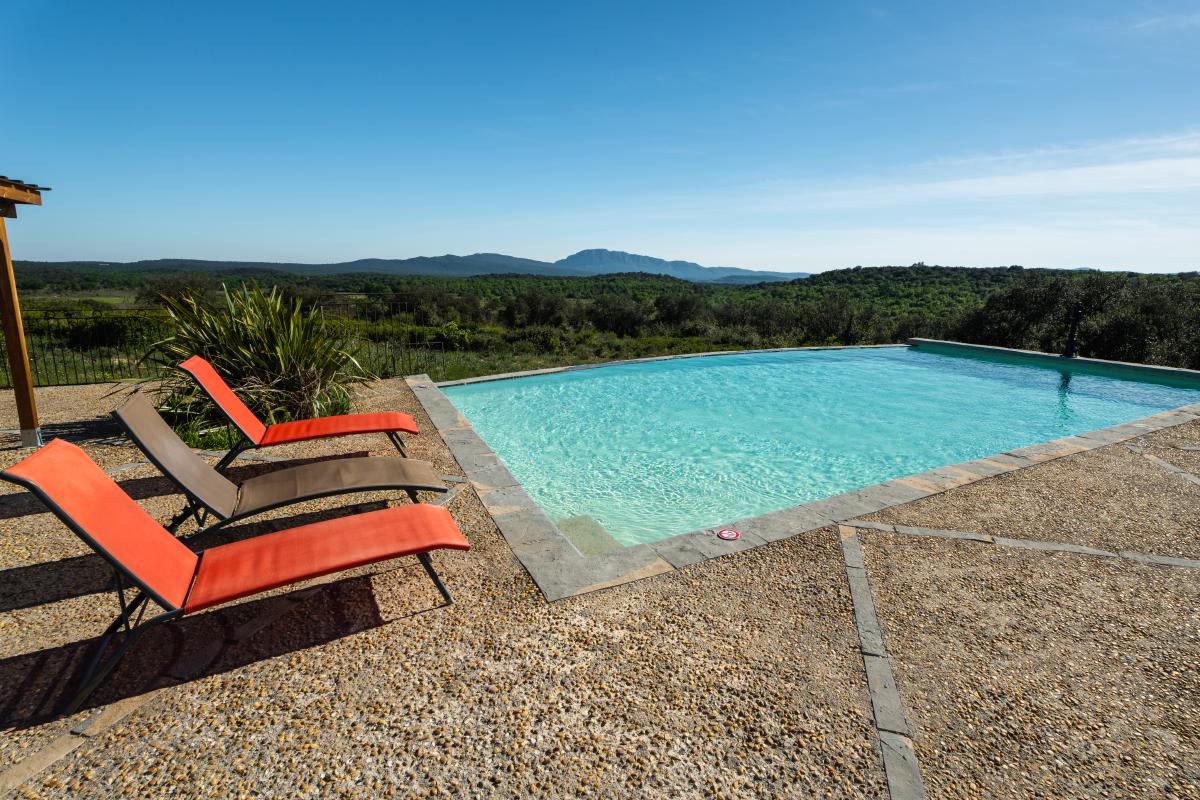 Facing the Pic Saint-Loup and its famous vineyards, the estate offers a 360-degree view overlooking the garrigue.